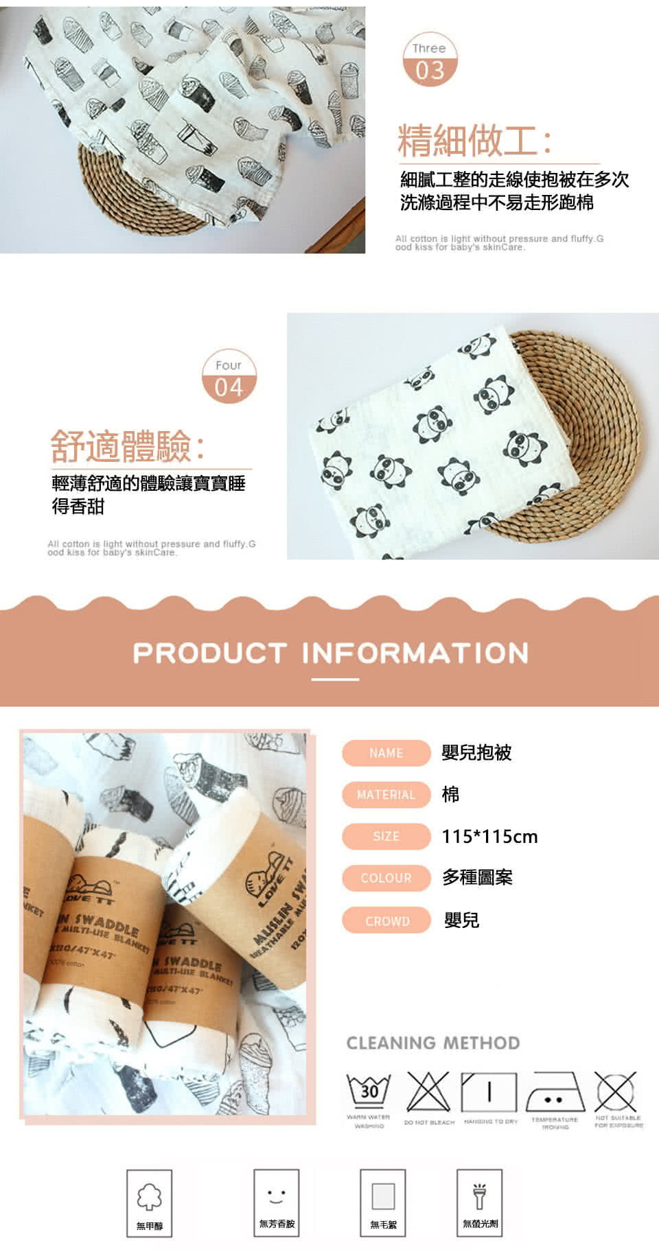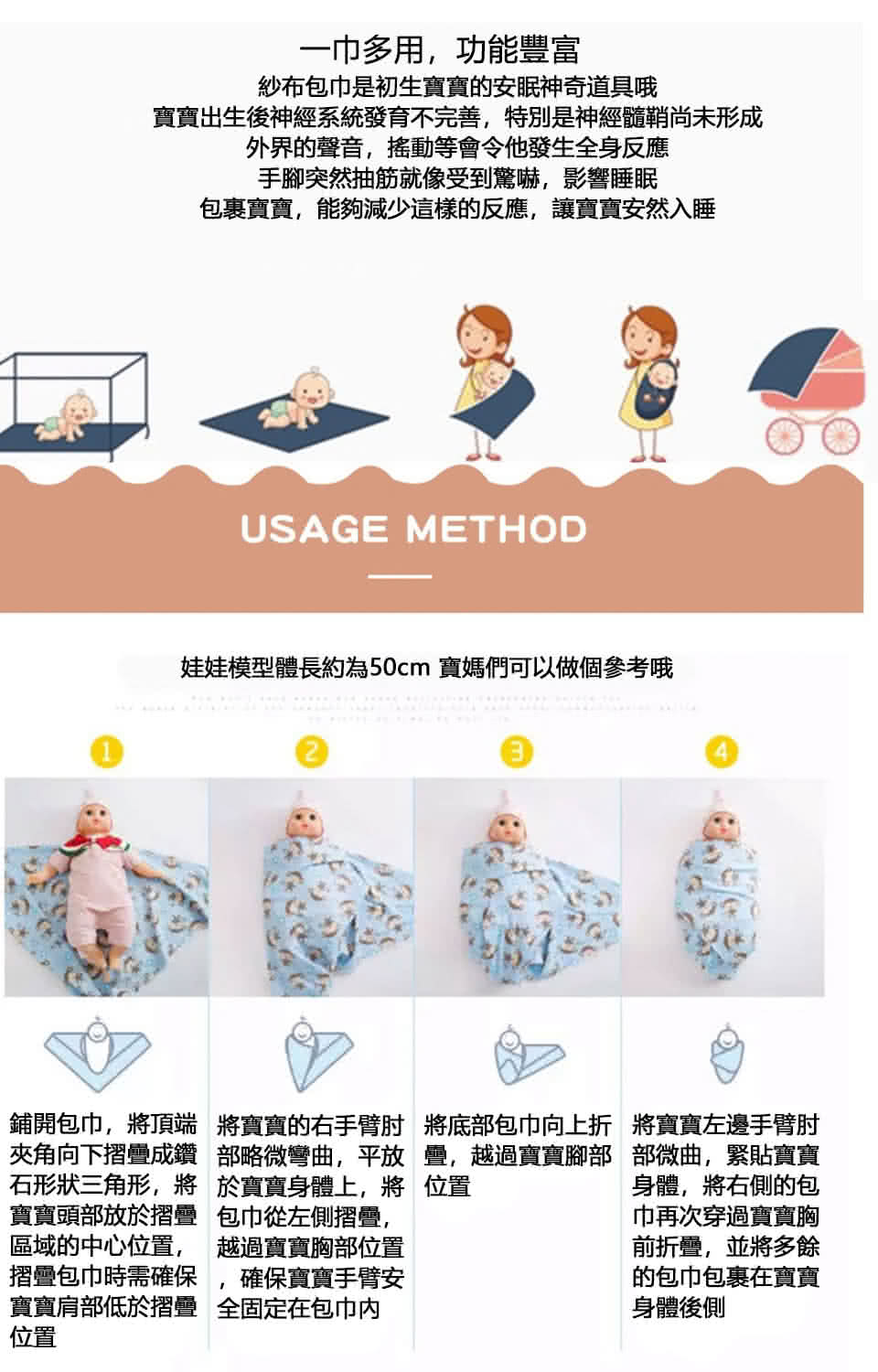 除了當包巾,還可以當作嬰兒車罩、抱毯、冷氣蓋毯、打嗝巾 ...等